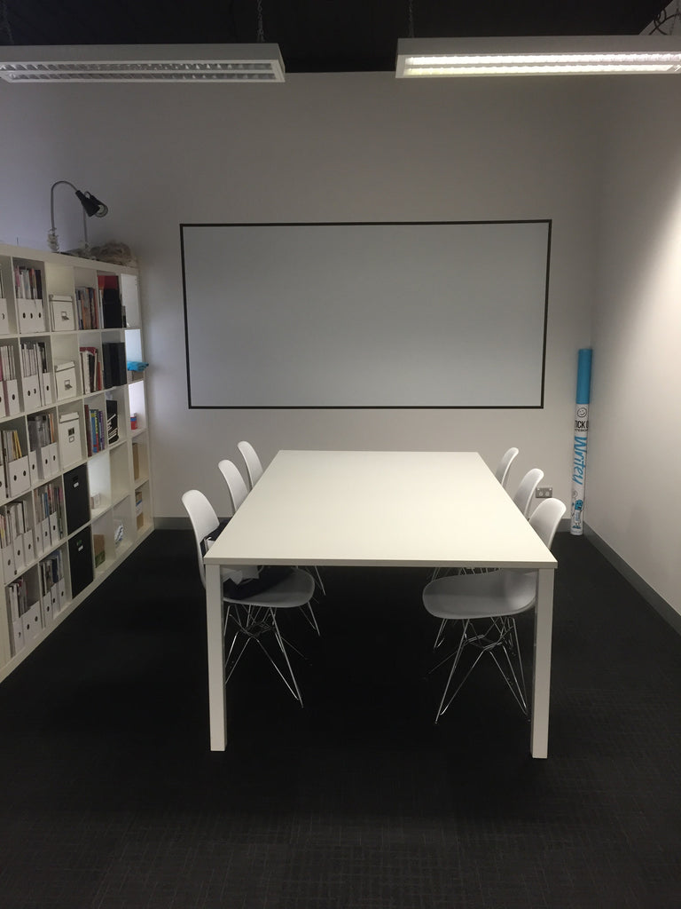 Our ultra-versatile flat finish WriteyBoard Matte kills two birds with one stone. A dry-erase board doing double duty as projector screen, we’ve eliminated the gloss so you can be the boss. Great for the conference room, classroom, or even the family room on movie night.